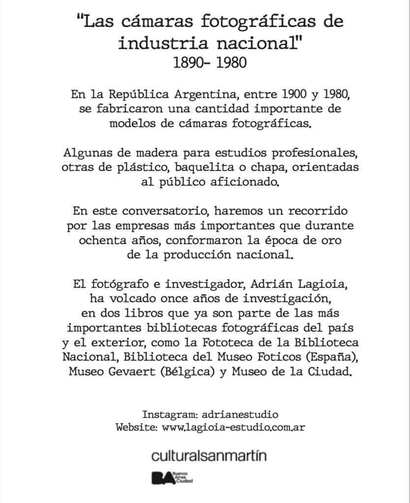 El martes 20 de mayo, lleve a cabo, un nuevo conversatorio sobre mi investigación relacionada con la industria nacional de cámaras fotográficas argentinas.